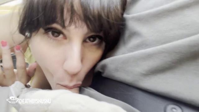 Выехав за город, кареглазая жена начинает заигрывать с муженьком. Погладив благоверному ноги, шалунишка расстегивает молнию на брюках и приступает теребить половой орган. Склонив голову, проказница обнимает залупу губками и страстно отсасывает. Милая стерва трудилась глоткой до тех пор, пока партнер не спустил.